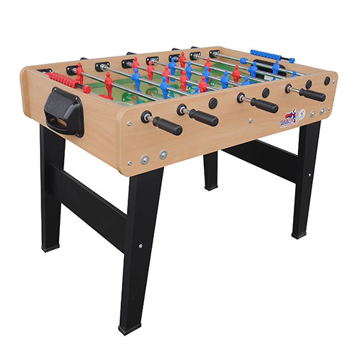 | Elegante voetbaltafel speciaal gemaakt als meubel in de woonkamer. De voetbaltafel heeft stijl en brengt ook plezier en spannende momenten met zich mee voor de hele familie. Gemaakt van hoge kwaliteit materialen met onder andere een speelveld van 5mm onbreekbaar glas en 16mm telescoop stangen voor stevigheid en veiligheid van kinderen. De tafel heeft een uitstekende prijs/kwaliteit verhouding en zal in iedere kamer passen. Deze voetbaltafel voldoet aan de Europese Speelgoed veiligheidseisen. Elegante voetbaltafel met stijl. Plezier en spanning voor de hele familie. Voldoet aan de Europese veiligheidseisen. Met 16mm telescoop stangen. Verkrijgbaar in meerdere kleuren. Onze speeltafels worden standaard ongemonteerd geleverd. Als extra service kunnen wij de tafel gemonteerd bij je leveren. Afmetingen 120x110x90 cm. Speelmaat 111x70 cm. Verpakkingsmaat 122x77x25 cm. Gewicht 50 kg. Poppetje, ballen, telescoop stangen en andere onderdelen zijn op aanvraag leverbaar van alle modellen. |