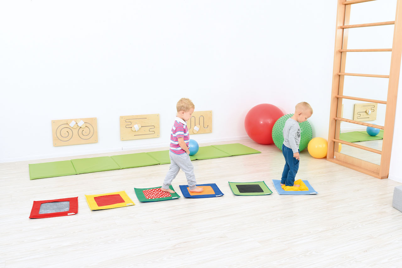 Spelletjes en oefeningen met vierkanten verbeteren de motorische vaardigheden en ontwikkelen een tastgevoel.