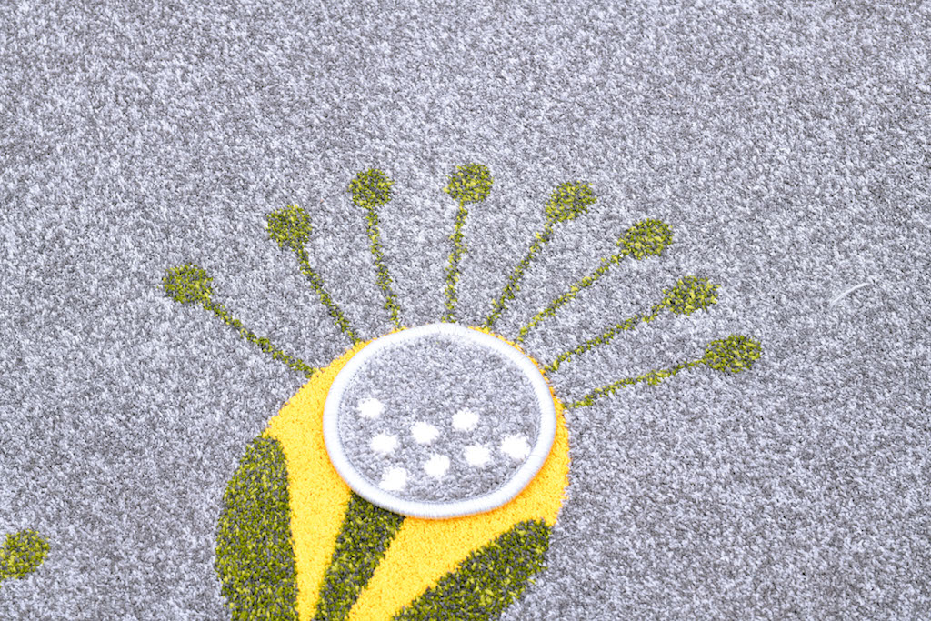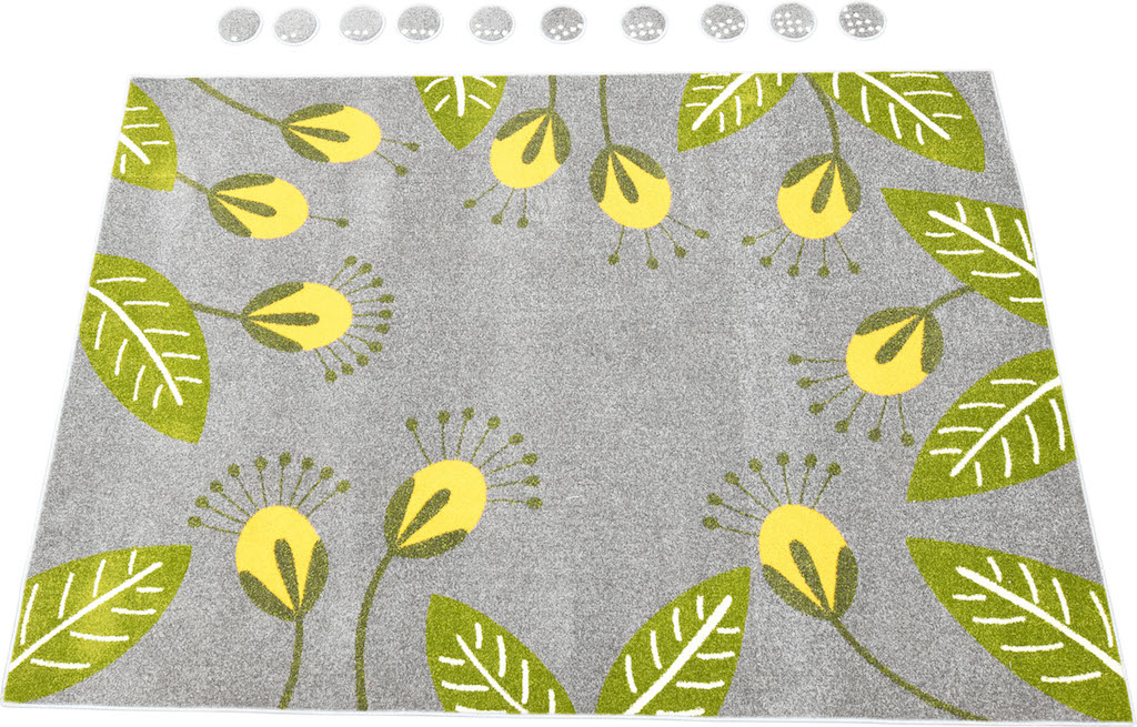 Een vloerkleed van fleece materiaal met een bloemmotief zal niet alleen de ruimte versieren, maar zal ook van onschatbare waarde zijn bij het leren tellen (elke bloem heeft een ander aantal meeldraden).