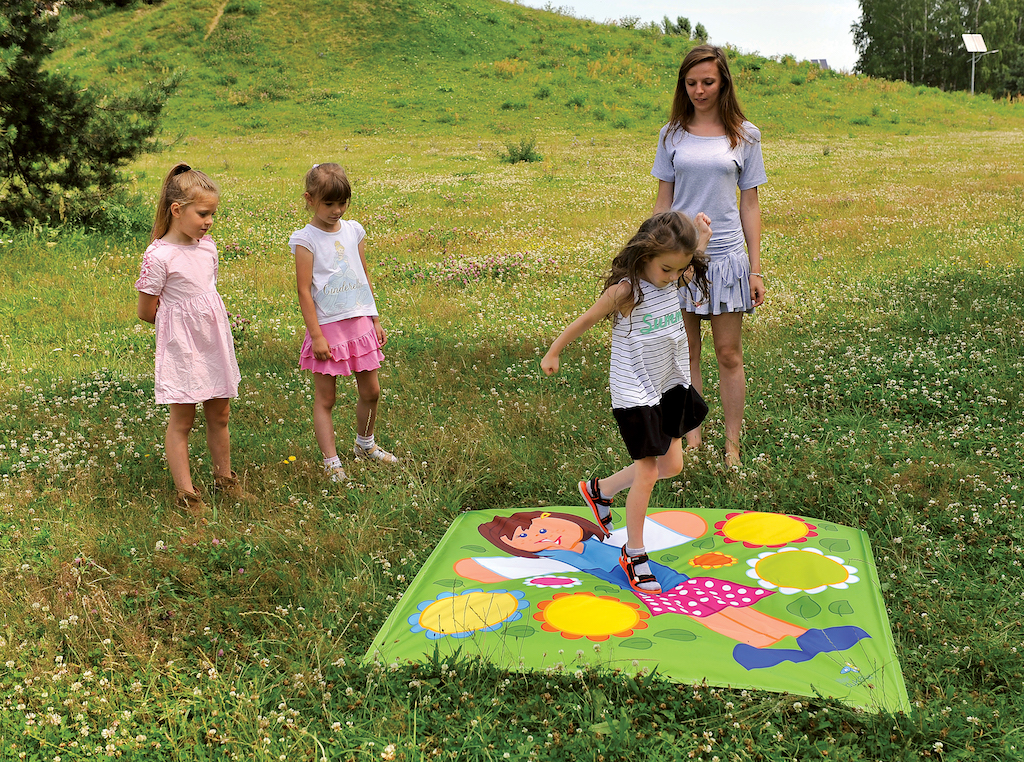 Het vloerspel is gemaakt van stevige stof, die gewassen kan worden een wasmachine (laagste termperatuur / geen kookwas / geen centrifuge.