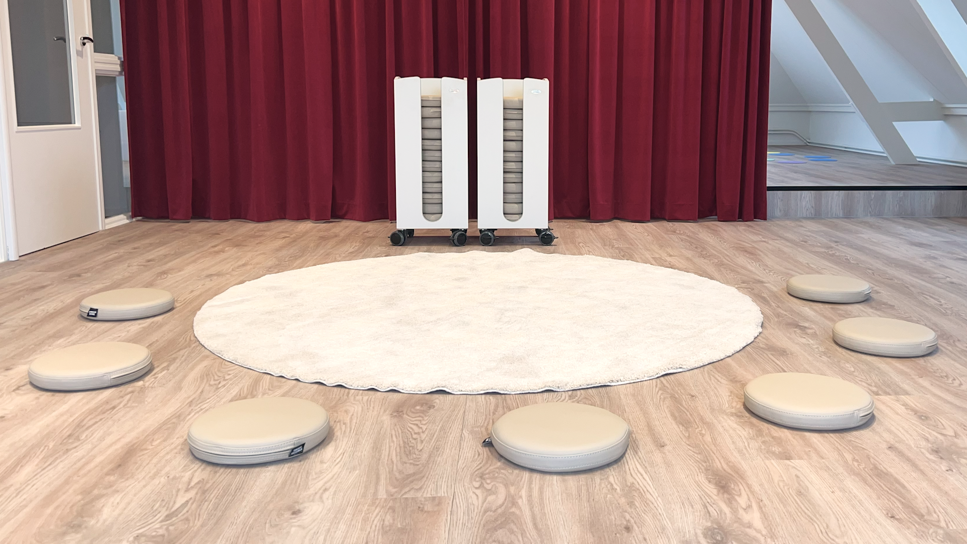 Ronde zitschijf met een doorsnede van 30 cm en dikte 4 cm.