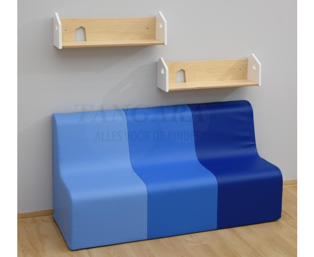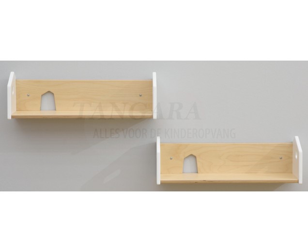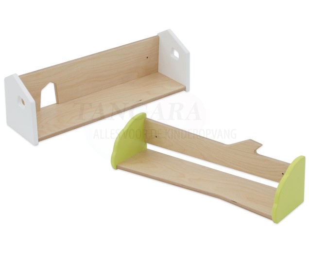 Praktische plank voor boeken en personages. Het heldere en aantrekkelijke huis of boomontwerp past mooi in de kleuterschool. |