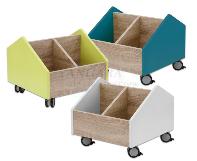 Er zijn veel boeken in drie gedeelde vakken. De kinderen kunnen hun boeken zelf verwijderen en terug plaatsen. De mobiele boekenkast is verkrijgbaar in wit, lime en petrol. Dit product wordt ongemonteerd geleverd en hierop is zelfmontage van toepassing.. |
