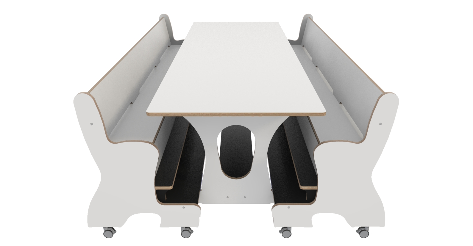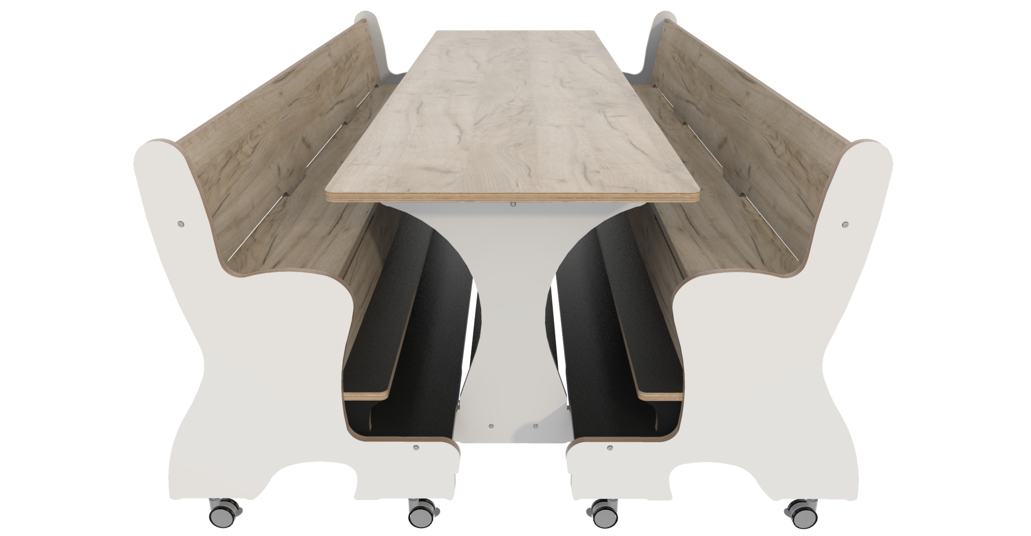 Hoogzit tafel L220 x B80 cm wit met grey craft oak en 2 banken Tangara Groothandel voor de Kinderopvang Kinderdagverblijfinrichting3