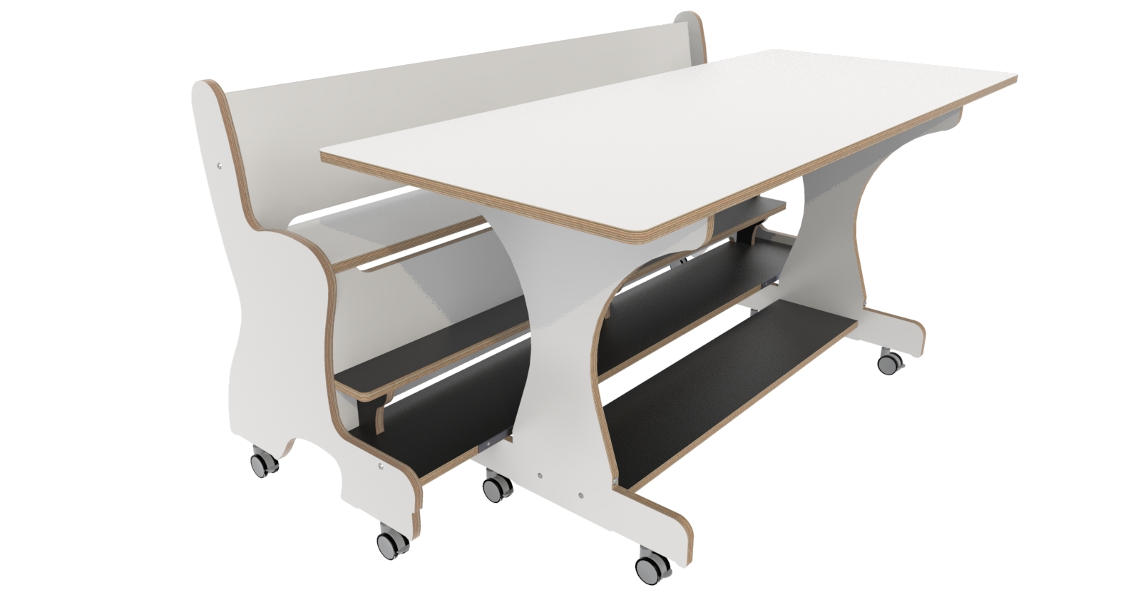 Hoogzit tafel L150 x B64 cm wit met bank Tangara Groothandel voor de Kinderopvang Kinderdagverblijfinrichting