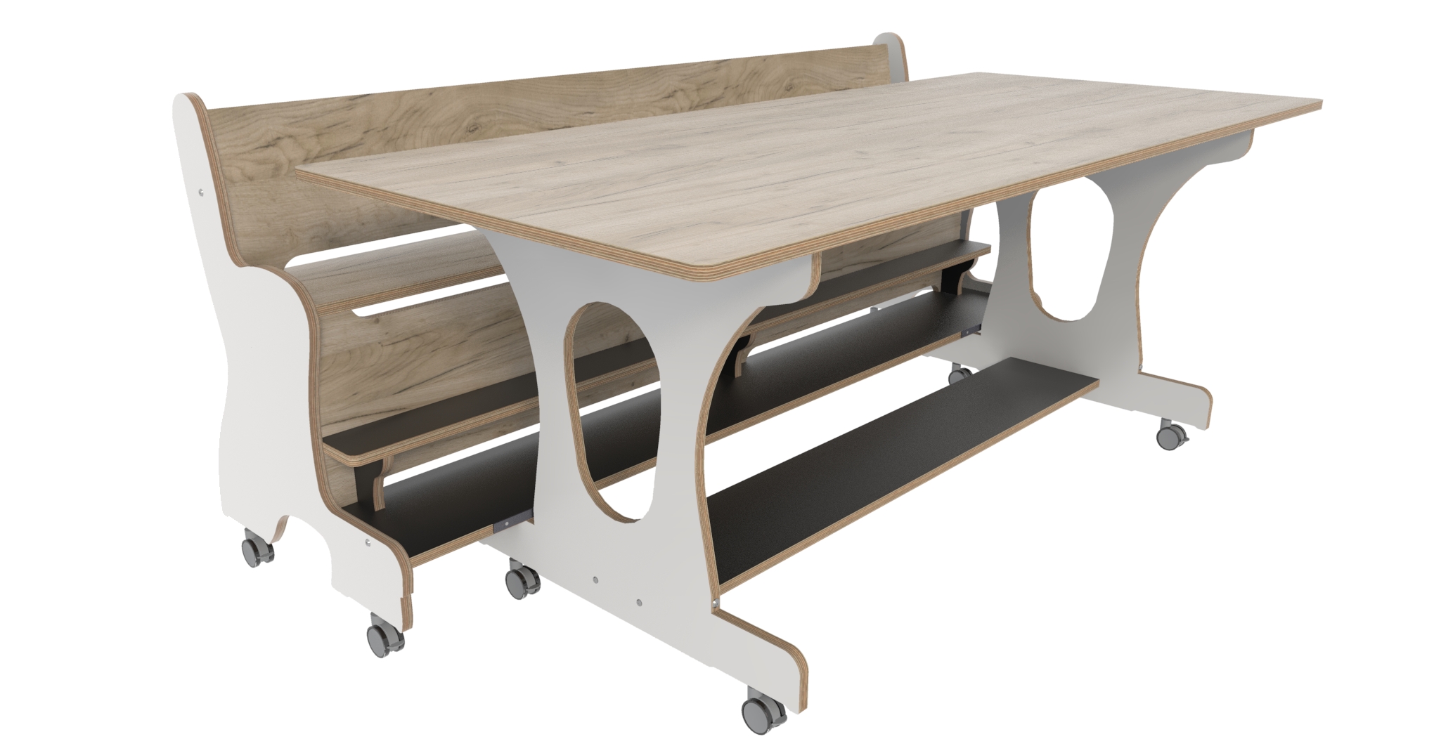 Hoogzit tafel L180 x B80 cm wit grey craft oak met 1 bank Tangara Groothandel voor de Kinderopvang Kinderdagverblijfinrichtin