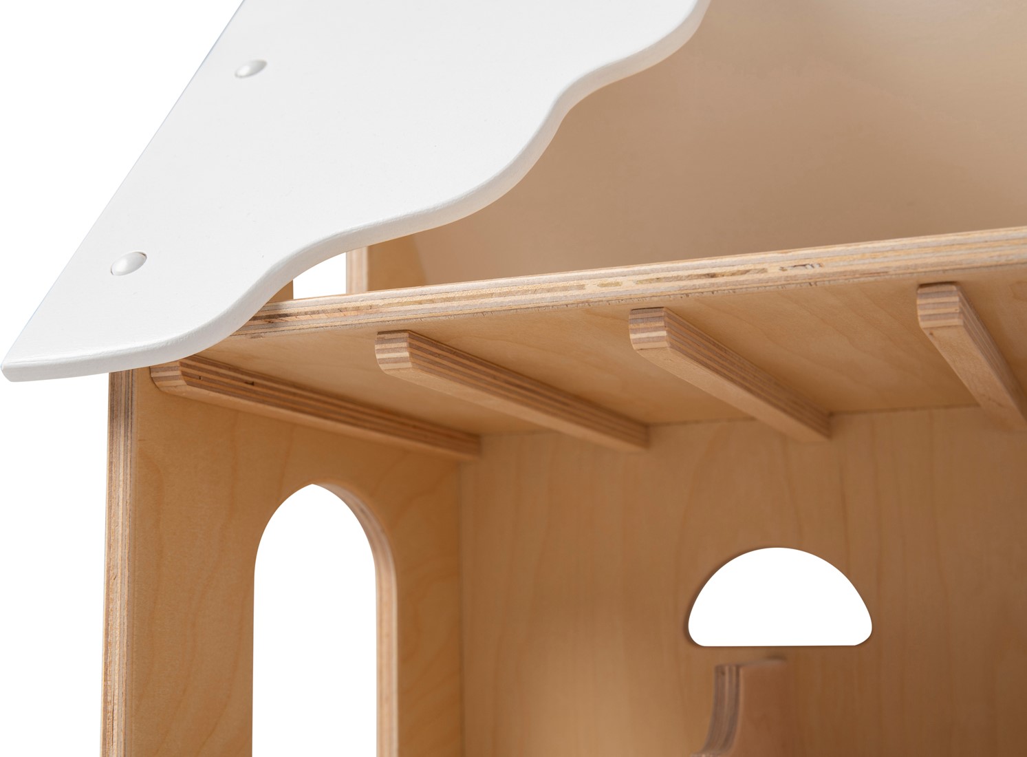 Het dak is aan de voorkant voor een groot deel open zodat er van meerdere kanten gespeeld kan worden met deze boerderij.
