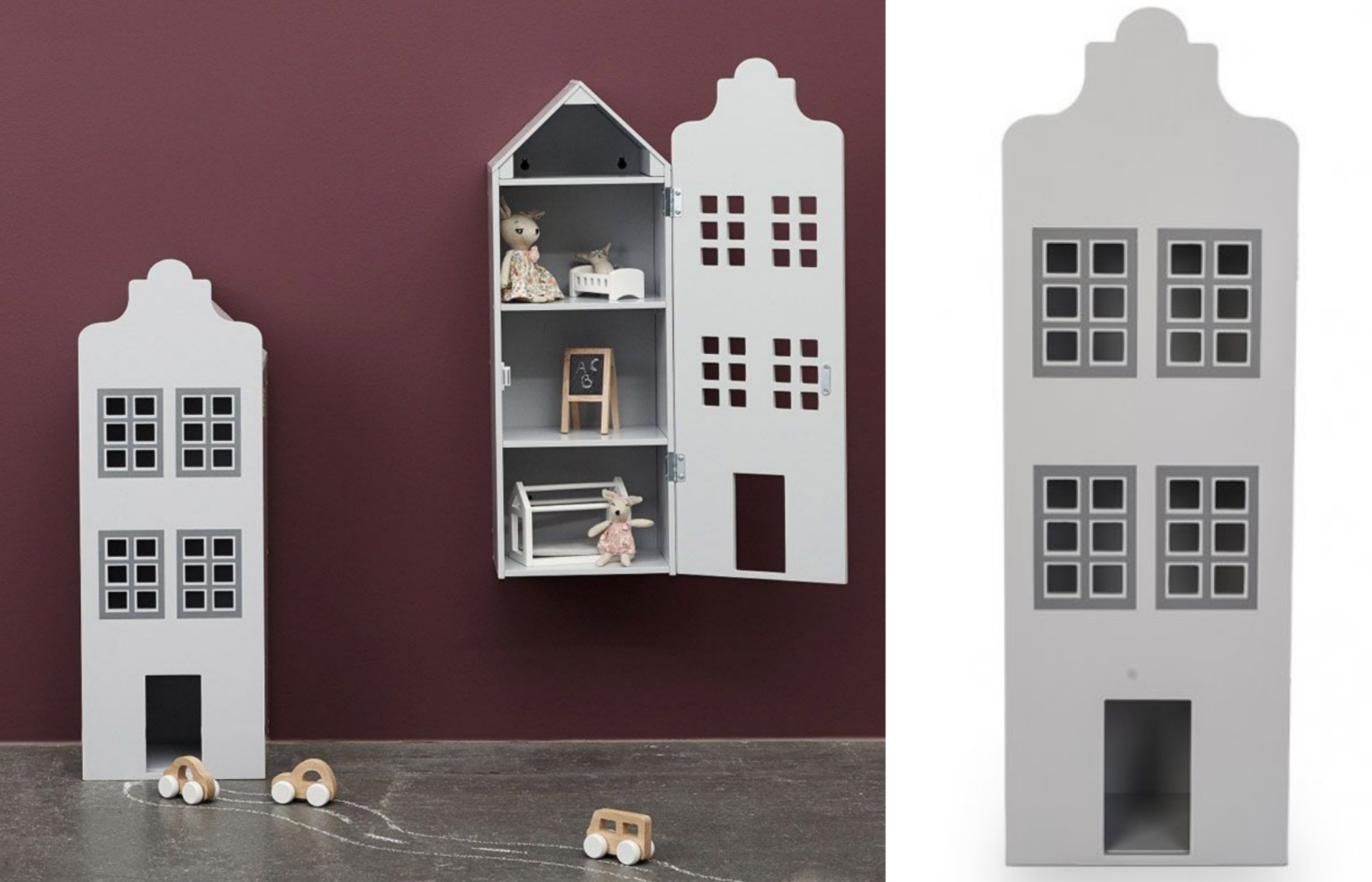 Dit huisje tevens te gebruiken als wandkast in een modieuze kinderkamer.