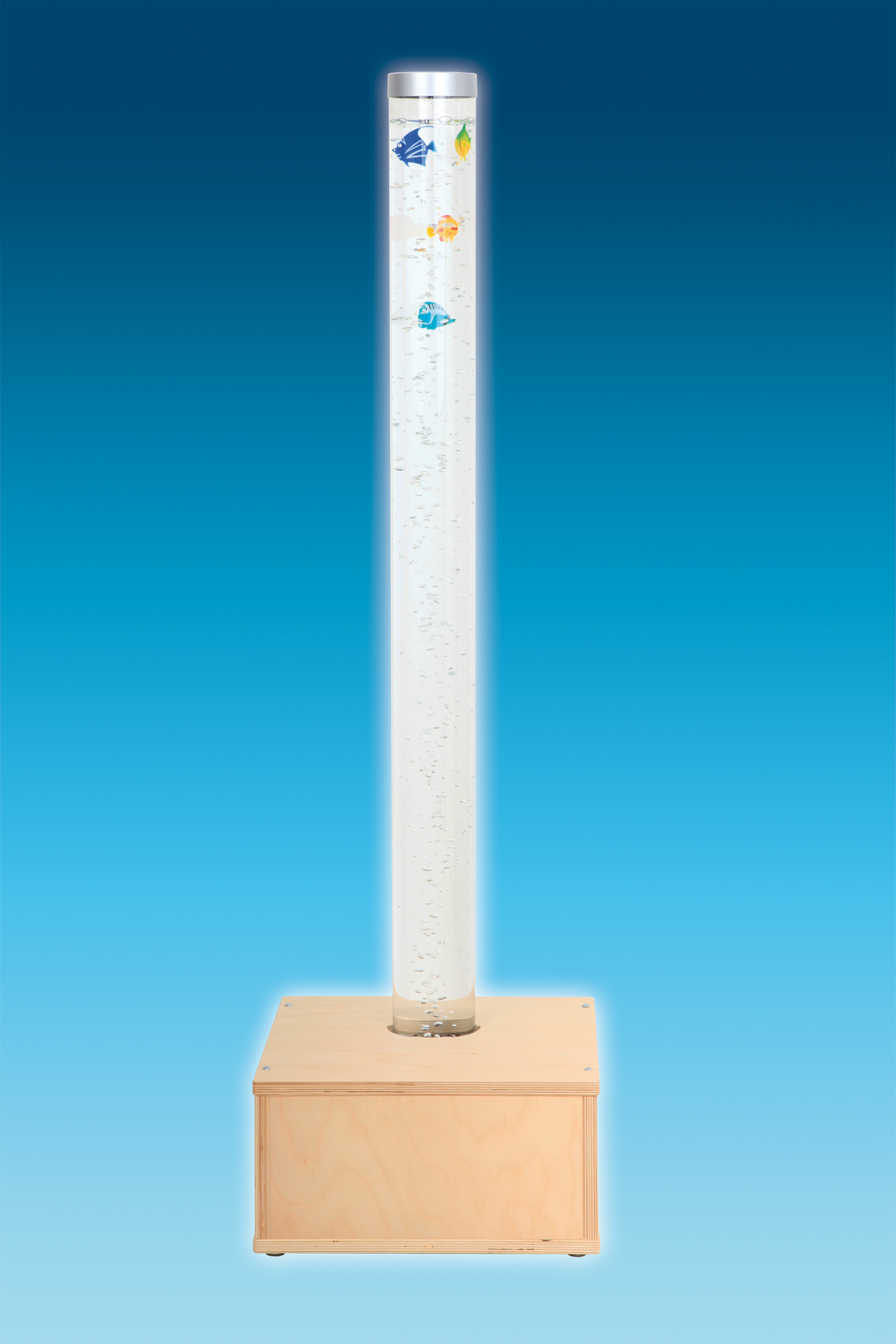 De bubbelunit heeft een hoogte van 130 cm en een diameter van 10 cm.Â