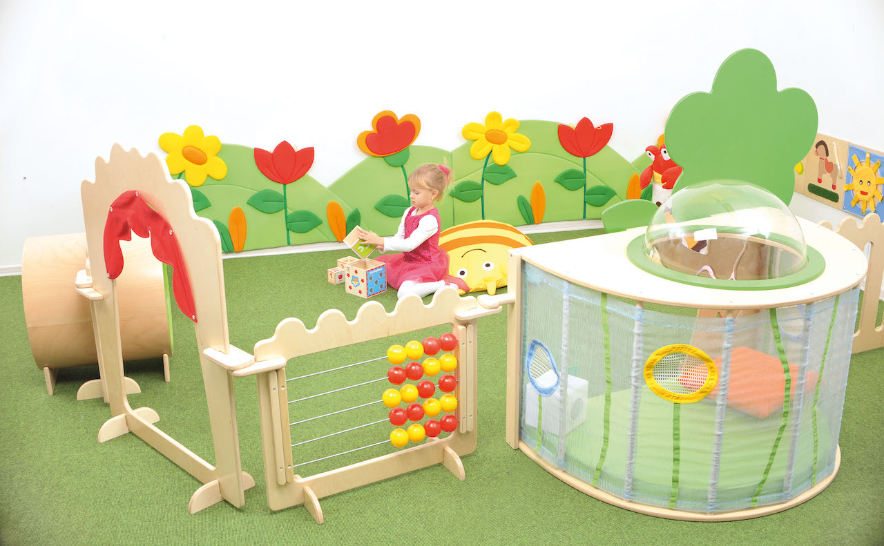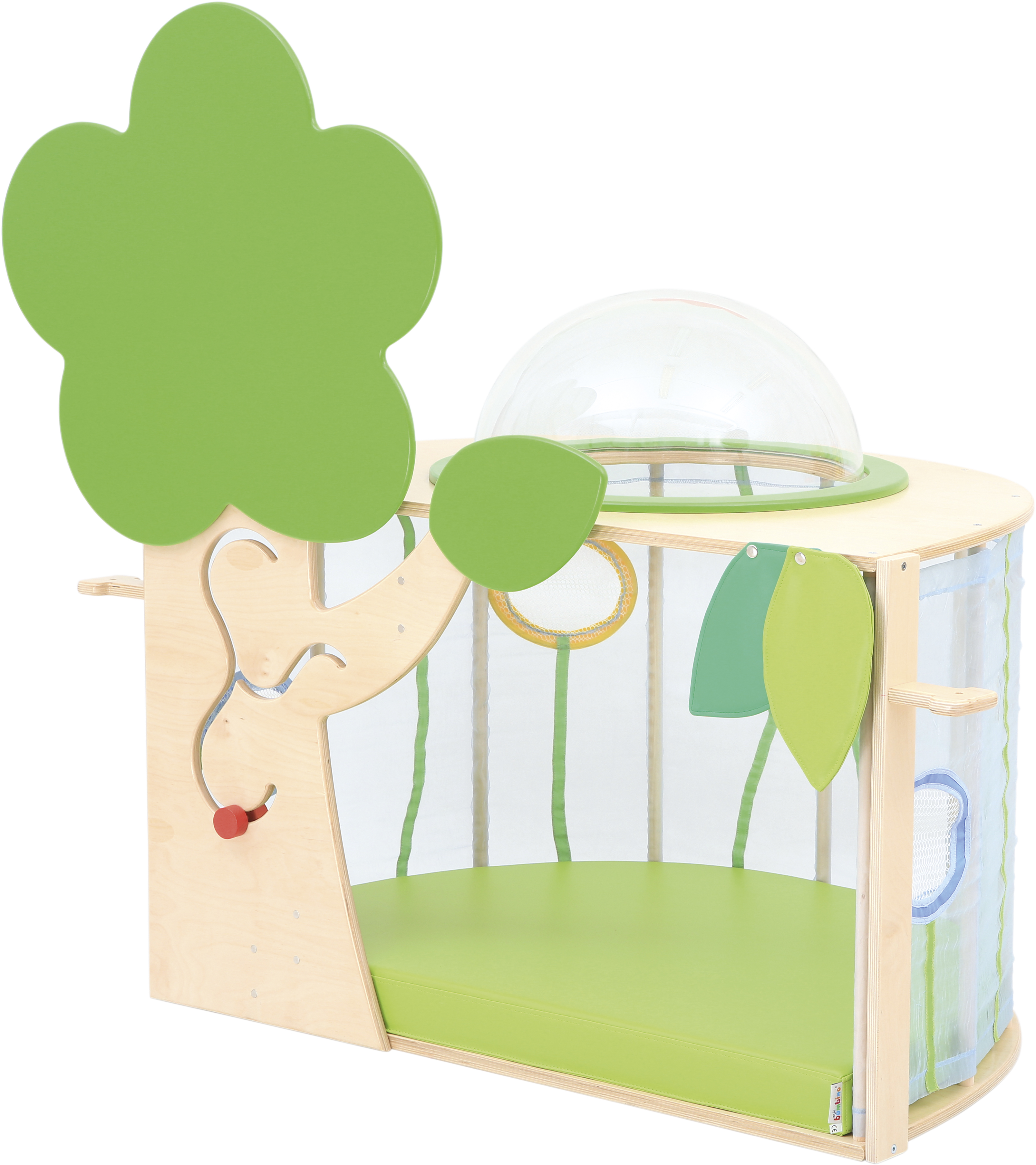 Het snoezelbos kan aan de scheidingspaneeltjes geschakeld worden maarkan ook op zichzelf functioneren.