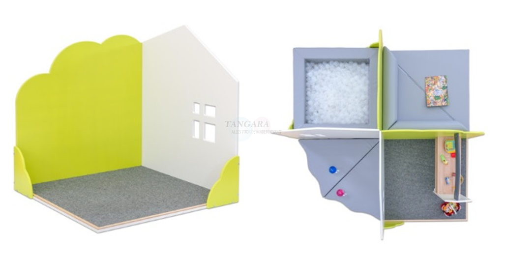 Het praktische kamerelement kan perfect worden geïntegreerd in een hoek of worden ingebouwd in combinatie met een tweede speelruimte als spelwereld.