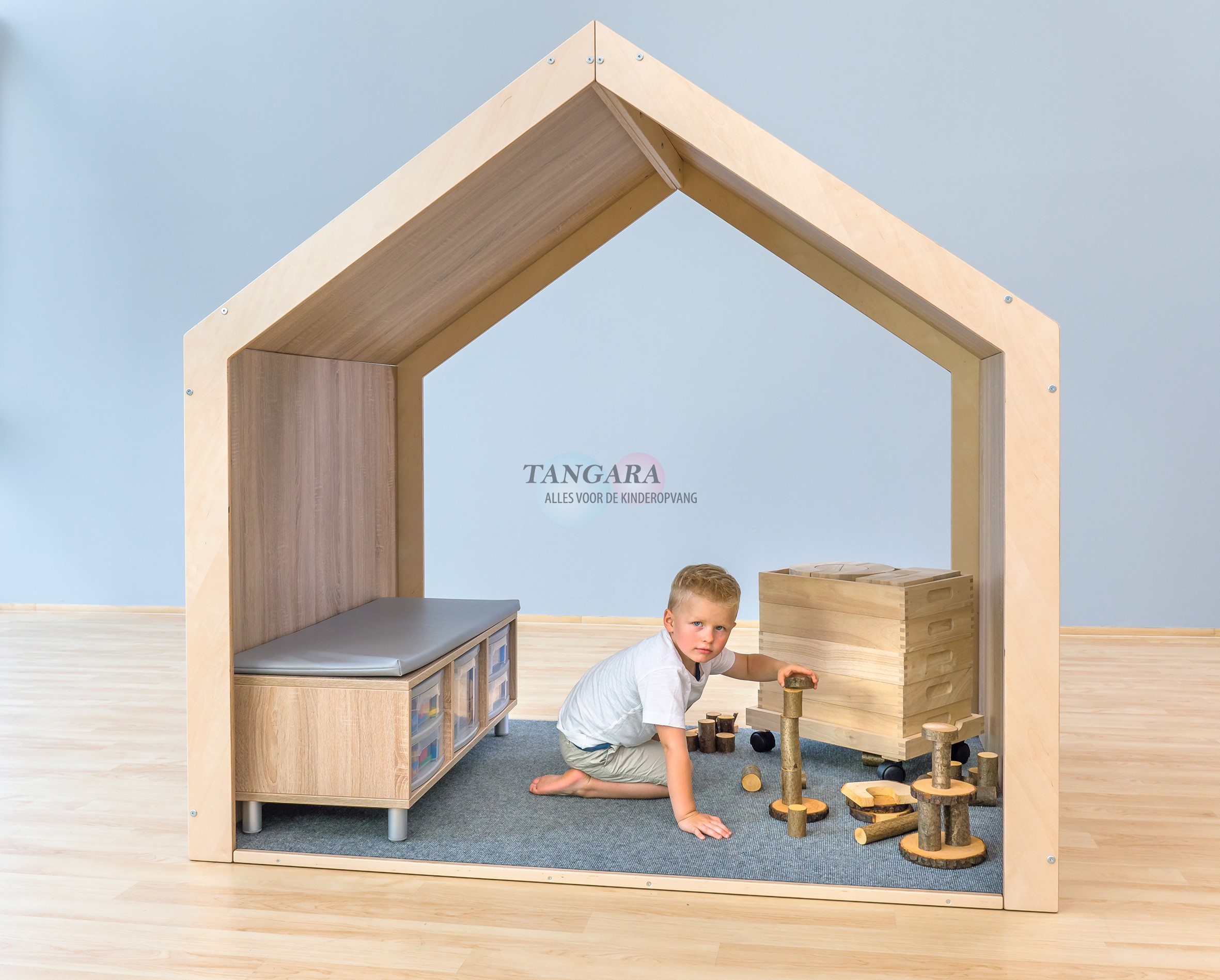 EduCasa speelhuis XXL geeft een gevoel van thuis. Zet willekeurig een ruimte op, een bouwhoek, een poppenhuis, een muziekkamer of een schilderhuis, Het speelhuisje is verkrijgbaar in verschillende kleuren. Zelfmontage. |
