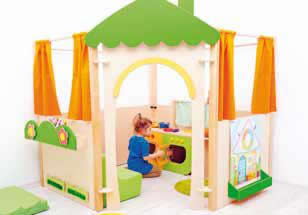Een gezellig en kleurrijk speel- en snoezelhuis.