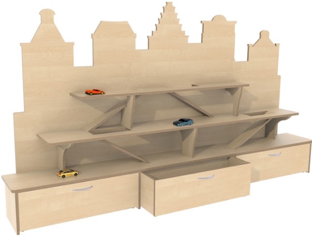 Grote kast die spelen en opbergen combineert.