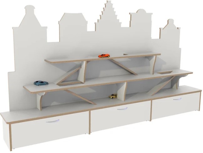 Grote kast die spelen en opbergen combineert.