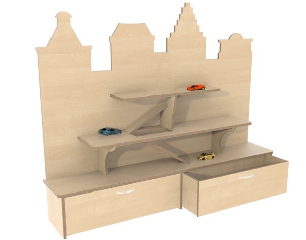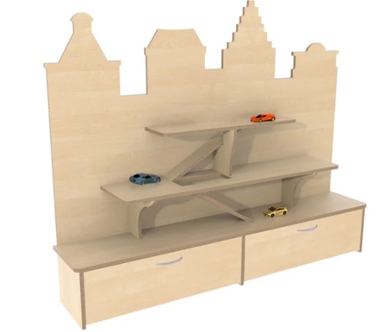 Grote kast die spelen en opbergen combineert.