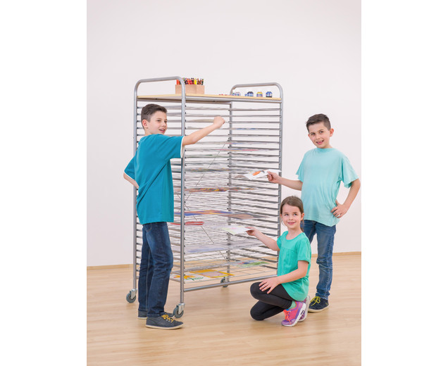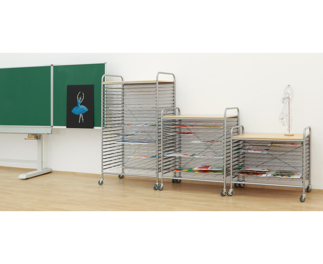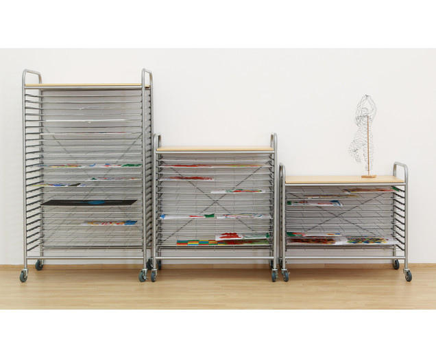| De grote droogwagen 25 grote droogroosters flexibel instelbaar dankzij vier rollen voor afbeeldingen met formaten tot DIN A1 De grote Betzold foto-droogwagen voor veel kleurrijke foto's Op de grote Betzold foto-droogwagen kun je veel natte foto's drogen zonder te verdwalen en zonder naar beneden te glijden. De Betzold-droogkar voor afbeeldingen is uitgerust met 25 droogroosters, die met geleiderails aan de zijkanten gemakkelijk in en uit kunnen worden geschoven. De afzonderlijke rasters bieden ruimte voor foto's tot het formaat DIN A1. Hierdoor kan de auto tegelijkertijd tot 100 A4-formaat afbeeldingen drogen. Flexibel en altijd waar u het nodig hebt Veel kleine kunstwerken en te weinig ruimte. De droogwagen kan flexibel in elke ruimte worden geplaatst en ook bruikbaar als toonbank voor andere ambachten. Details Afmetingen (H x B x D): 153 x 94 x 60 cm Maaswijdte: 11,5 x 14,7 cm De afstand tussen de bodems is 4,5 cm Gegevens & feiten te gebruiken: Leeftijd vanaf:6 jaar textuur: Primair materiaal:metaalAndere materialen:Hout, rubber, kunststof Afmetingen / gewicht: diepte:60 cmbreedte:94 cmheight:153 cmTotaal gewicht:45 kg Algemene info: |