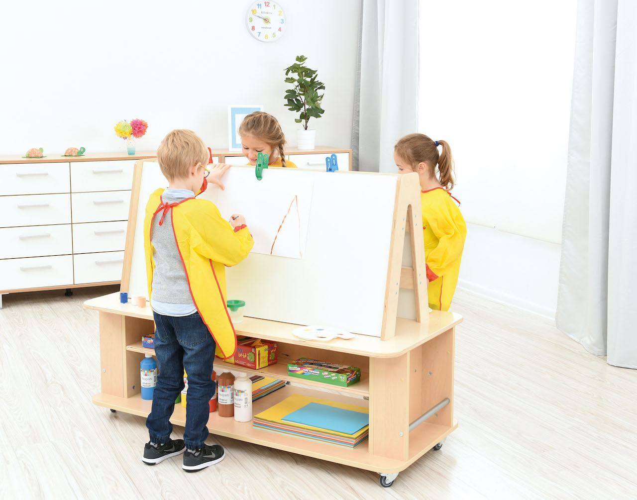 Aan beide kanten van de kast zitten ezels waar je papier aan kunt bevestigen.
