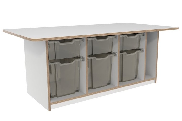 Compacte bouwtafel voorzien van 3 grote H30 en 3 mediumgrote H15 transparante lades,