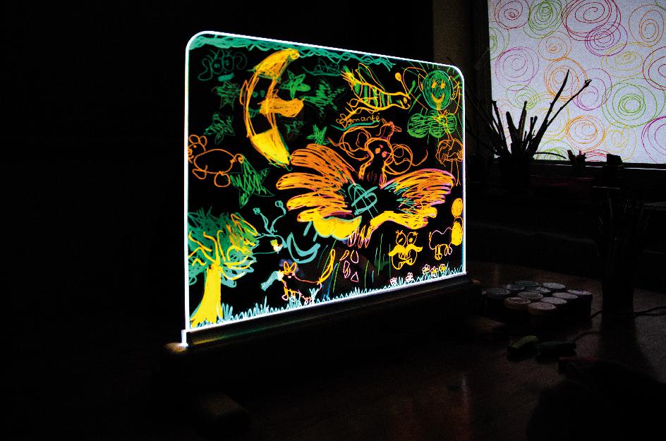 | Lichttafel Staand Tafelmodel Voor kinderen is het vingerverven, verven met aquarel en het gebruik van licht een magische activiteit. Deze mooie staande lichttafel model kan van beide kanten door twee kinderen worden beschilderd en nodigt zo uit om te experimenteren. In de gelakte massief houten voet is een LED-lichtstrip geïntegreerd die het kunstwerk doet verlichten. Naast wit licht zijn er nog 15 kleuren en 4 van kleur veranderende modus opties mogelijk – het schilderij veranderd in elke lichtgevende kleur weer totaal, fascinerend! Eigenschappen Lichttafel Voor het gemakkelijker schoonmaken kan de ruit worden verwijderd van de houten standaard. De hoeken van de glazen ruit en de houten elementen zijn mooi afgerond. Incl. afstandsbediening, handleiding / montage-instructies. Wordt gefragmenteerd geleverd (2 voetsteunen moeten worden bevestigd met twee ingesloten in-bus schroeven). Prestaties: 14,4 watt (stekker met transformator). Inhoud: Lichttafel staand model inclusief voetsteun Materiaal: Hout, kunststof en veiligheidsglas Afmetingen: 55,7 x 46,7 x 4,5 cm Gewicht: 4kg |