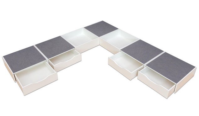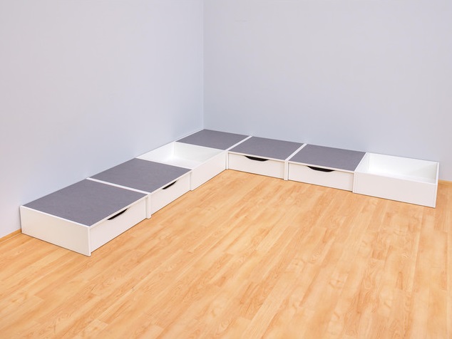| Speelplatform/ Parcoursset Ferdinand met stuk voor een ballenbak/blokken enz inclusief extra opslagruimte Individueel en zelf ontworpen Een podiumlandschap voor de kinderopvang, dat altijd nieuw en anders ingevuld kan worden. De platform Ferdinand met het tijdloze witte decor is een echte troef met veel afwisseling. Veelzijdig en altijd nieuw Doeken, ballen of zelfs blokken, bouwmaterialen kunnen in de twee voetstukvierkanten worden gevuld. Zo creëer je een ballenbad met altijd nieuwe inhoud in een oogwenk. Alle zintuigen van de kinderen zijn aangesproken. Overigens kan het begrip van kleuren en vorm vrij speels worden bevorderd. Voor het bewaren van de inhoud van de ballenbaden zijn sokkels met rolboxen in de set inbegrepen. Hier zijn natuurlijk alle andere speelgoed zoals boeken, bouwstenen en kleine voertuigen hun plaats. Geniet van de voordelen van linoleum van hoge kwaliteit De podia zijn uitgerust met linoleumvloeren van hoge kwaliteit. Deze antibacteriële en geluidsarme coating is wonderbaarlijk eenvoudig te reinigen en te desinfecteren. Hij is ook antistatisch. Met deze eigenschappen is het ideaal voor gebruik in kinderopvang. Combineer en complementeer De voetstukset Ferdinand hoeft niet te worden vastgeschroefd of vastgeklemd en kan worden opgesteld op basis van uw kameromstandigheden. De antislip-randen zorgen voor veiligheid en stabiliteit van alle elementen. De set is alleen beschikbaar in de gecoördineerde, afgebeelde kleuren. Natuurlijk kan de sokkel op elk moment worden uitgebreid met sokkels uit ons diverse assortiment. belangrijk: De voetstukelementen zijn exclusief ontwikkeld voor gebruik door baby- en kleuterkinderen (0-6 jaar). Daarom is het maximale laadvermogen 120 kg per element. De vloer van de rolboxen van de ladeblokken mag een maximale belasting van 60 kg niet overschrijden. levering 1x voetstuk - vierkant, decor wit, 24 cm, linoleum grijs, (hxbxd) 24x75x75 cm 2x voetstuk - vierkant om te vullen, decor wit, 24 cm, (hxbxd) 24x75x75 cm 4x sokkel met rolkist, witte decor, 24 cm, linoleum grijs, (hxbxd) 24x75x75 cm. te gebruiken: Aanbevolen leeftijd: 0-6 jaar textuur: Materiaal: Hout Afmetingen / gewicht: Gewicht incl. Verpakking: 172 kg |
