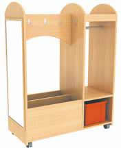 Omschrijving: Groot verkleedmeubel met kapstokken en ruimte voor kleerhangers. Opbergvakken onderaan. Voorzien van een passpiegel van onbreekbaar plexiglas.