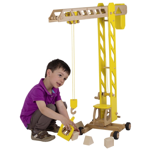 Deze  houten hijskraan is van zeer hoge kwaliteit en voorzien van echte rubberen banden!