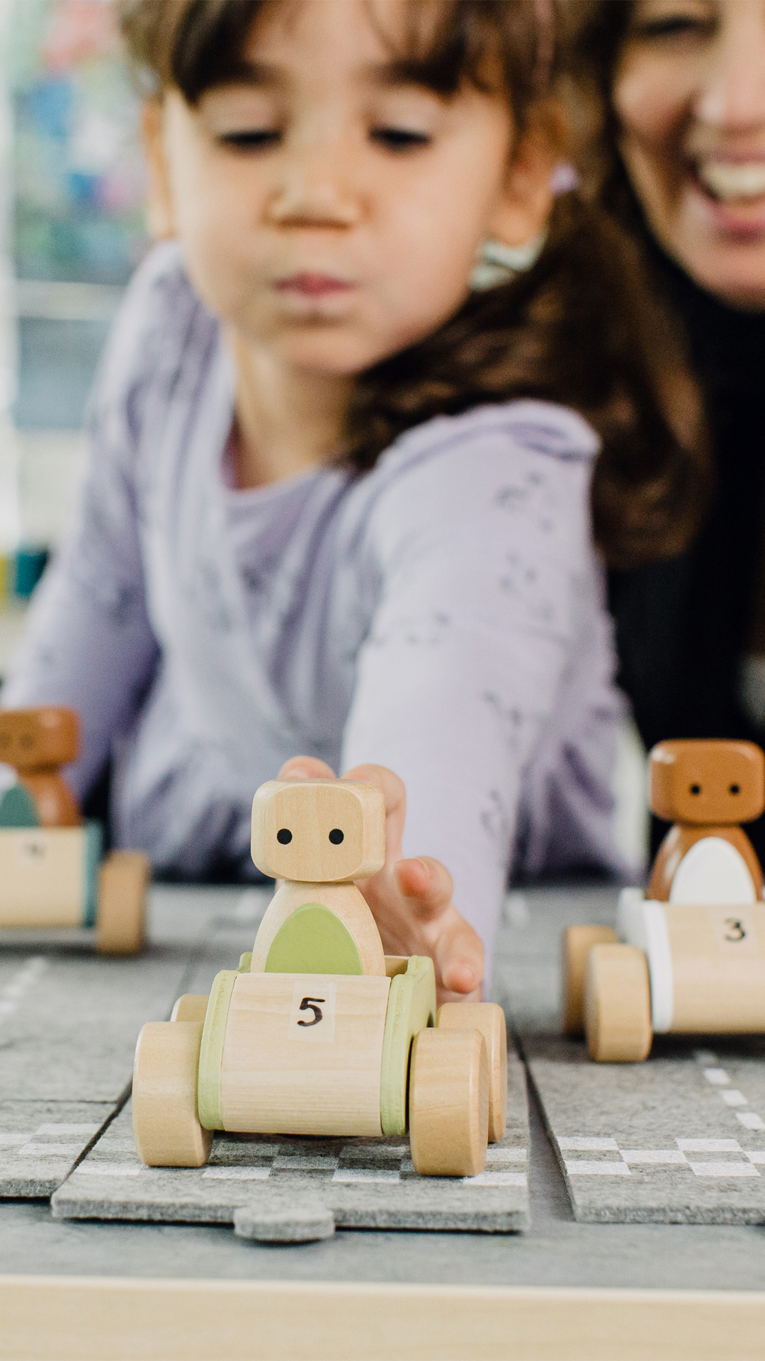 Kinderen kunnen hun eigen straatlandschappen bouwen en met de kleine houten