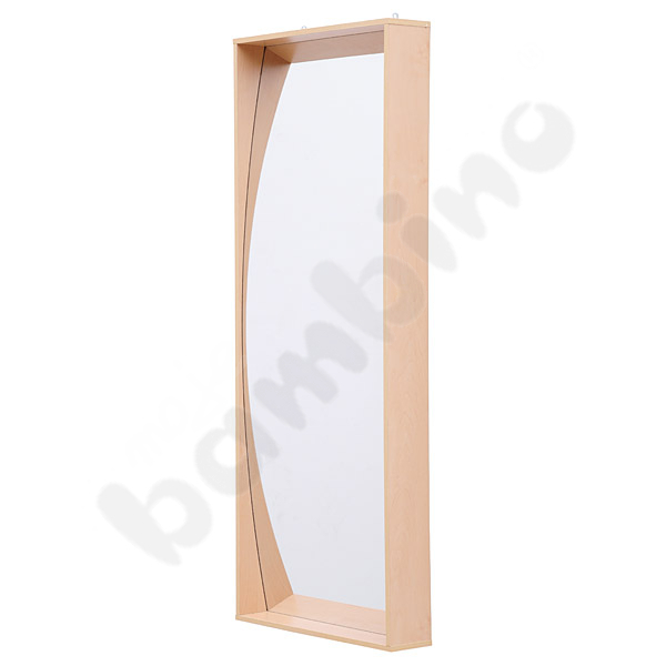 De acryl, onbreekbare spiegel werd geplaatst in een stabiel frame gemaakt van gelamineerd spaanplaat in berken decor.