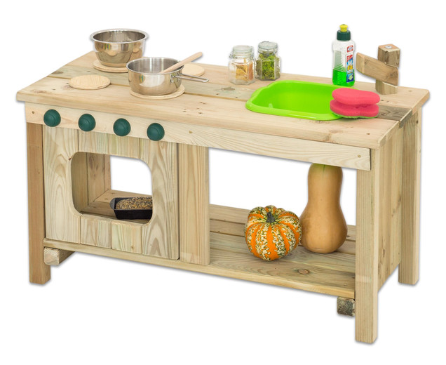 | Voor creatieve chefs Extreem stabiel Speelbaar aan beide kanten Met fornuis, oven, afneembare gootsteen, kraan en voldoende ruimte voor alles wat u nodig heeft voor keukenwerkzaamheden! Het bijzondere: er is voor elke leeftijd de juiste hoogte. Dus zelfs de kleintjes buiten kunnen hun kookvaardigheden bewijzen! Levering volledig gemonteerd. Roer, kook en spoel - kinderen houden van keukenwerk! En met onze buitenkeukens kunt u dit plezier buiten gemakkelijk in de frisse lucht brengen. De kunst: alle elementen zijn aan beide zijden bespeelbaar, uiterst stabiel en bieden creatieve chef-koks veel mogelijkheden voor fantasierijke maaltijden. In verschillende versies voor uw individuele keukenplanning! materiaal: Hout is altijd een natuurlijk product. Daarom is het niet voldoende dat oppervlakken en uiterlijk veranderen in de tijd en het materiaal een nobele zilveren glans aanneemt. Harslekkages zijn ook mogelijk, maar kunnen eenvoudig en snel worden verwijderd met behulp van Entharzer. Vochtschommelingen veroorzaakt door klimatologische invloeden kunnen leiden tot scheuren, maar dit heeft geen invloed op de stabiliteit van het hout. De keteldrukimpregnering kan groenachtige zoutkristallen produceren, maar deze zijn onschadelijk en vervagen na verloop van tijd. Hoogte: 45 cm Breedte: 84 cm Diepte: 37 cm Gewicht incl. Verpakking: 7 kg oppervlakte: Levering volledig gemonteerd! |