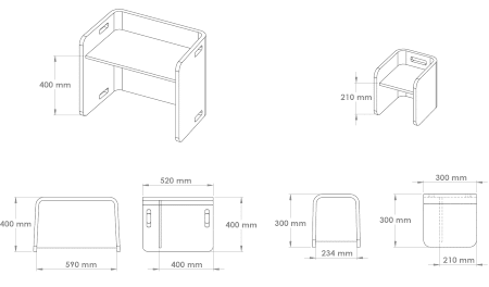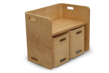 Berken multiplex met mooie afrondingen, diverse hangrepen voor het eenvoudig verzetten.