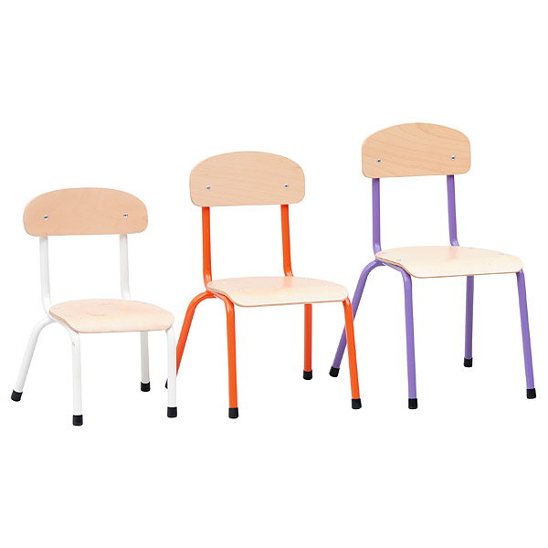 Stoel maat 0 = Zithoogte 21cm met zitting en rugleuning van gelakt beuken multiplex 6 mm.