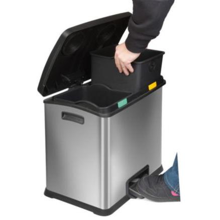 Rechthoekige pedaalemmer van mat rvs met twee kunststof binnenemmers om eenvoudig afval te scheiden. Beide emmers hebben een inhoud van 12 liter. Deze pedaalemmer is voorzien van een gedempte deksel en Fingerprint Proof coating.