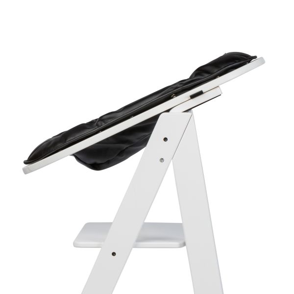 Dankzij het slimme design kan het eetblad naar achteren geklapt worden wanneer je hem (tijdelijk) niet gebruikt.