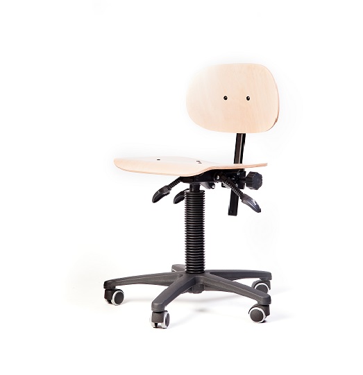 Leidsterstoel beuken met verstelbare zithoek voor extra zitcomfort. Voorzien van rubber geremde wielen.