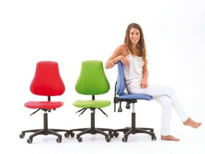 Deze leidsterstoel is leverbaar in de kleuren rood, blauw, lime groen, wit, taupe en zwart.