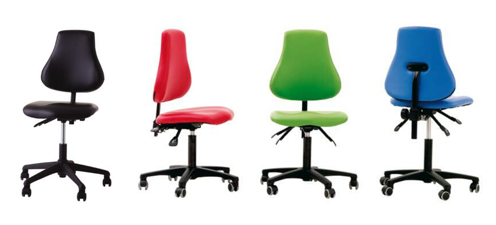 Deze leidsterstoel is leverbaar in de kleuren rood, blauw, zwart en lime groen.