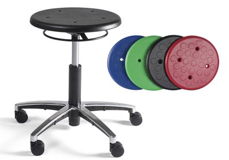 Taboeret PUR zwart is in hoogte verstelbaar door rondom bedienbare ring.