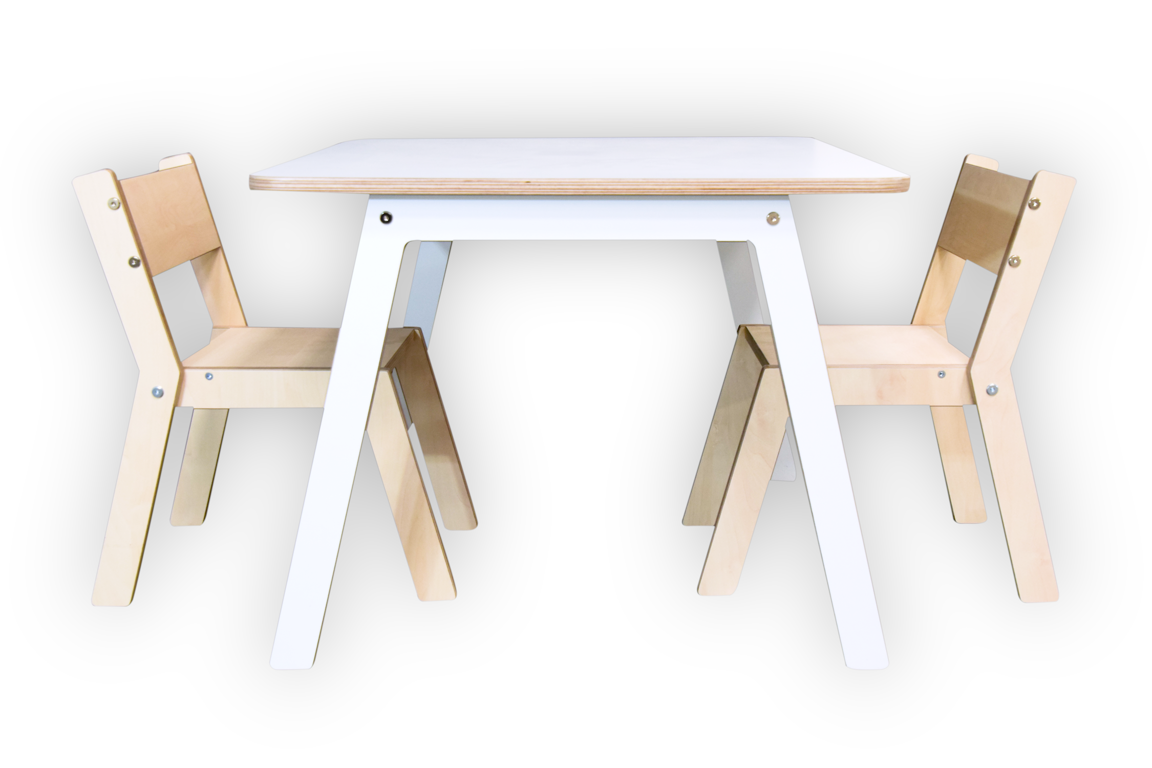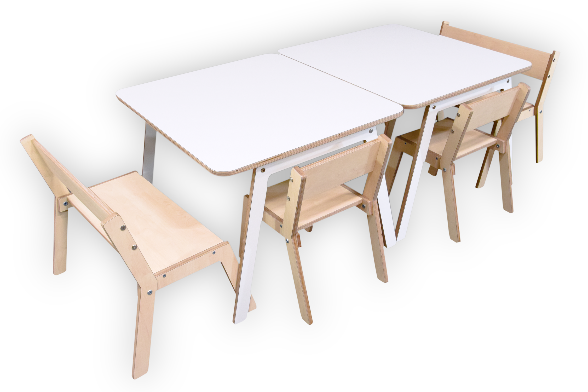 Uitgevoerd in berken multiplex met witte HPL toplaag.