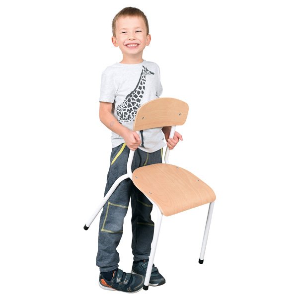 Stoel maat 3 = Zithoogte 35cm met zitting en rugleuning van gelakt beuken multiplex 6 mm.