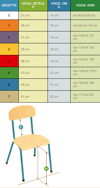Stoel maat 5 = Zithoogte 43cm met zitting en rugleuning van gelakt beuken multiplex 6 mm.
