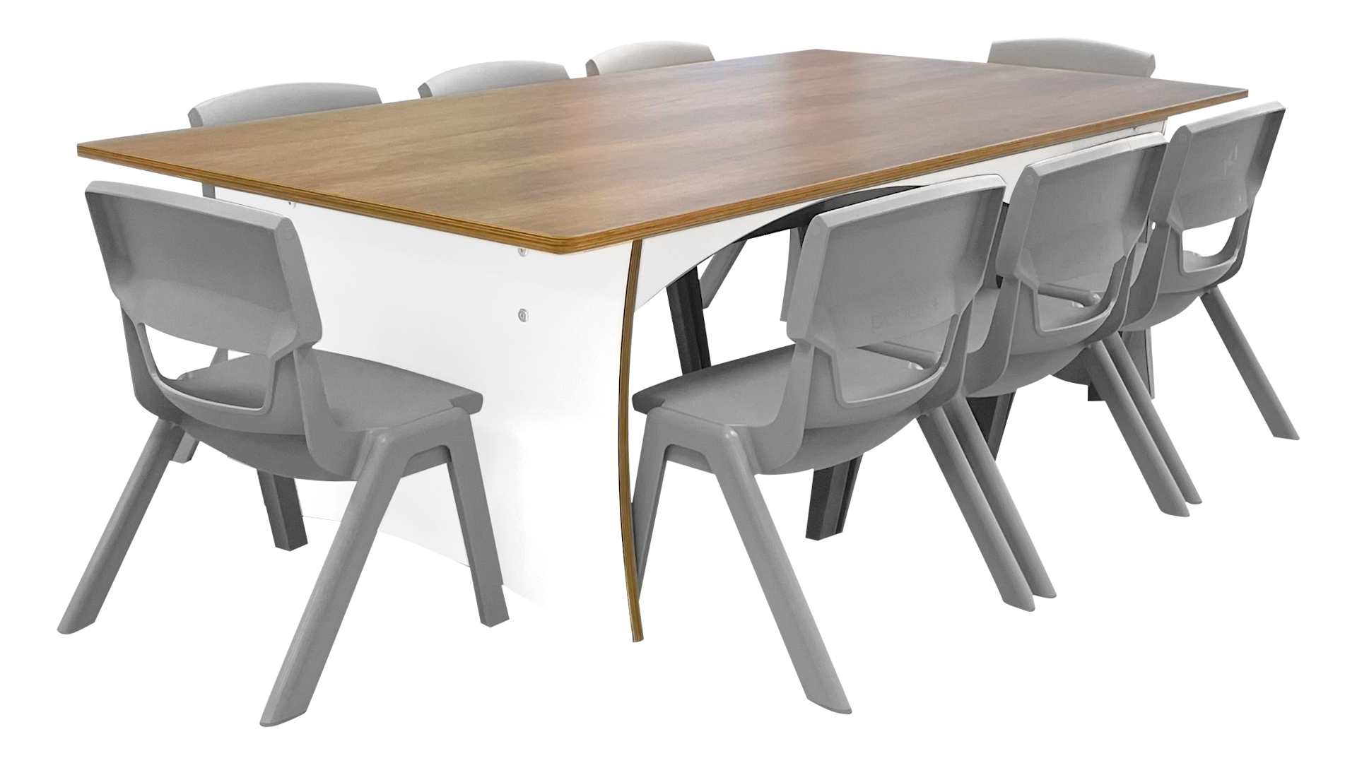 De instructietafel 165 kan met diverse krukjes, stoelen en bankjes