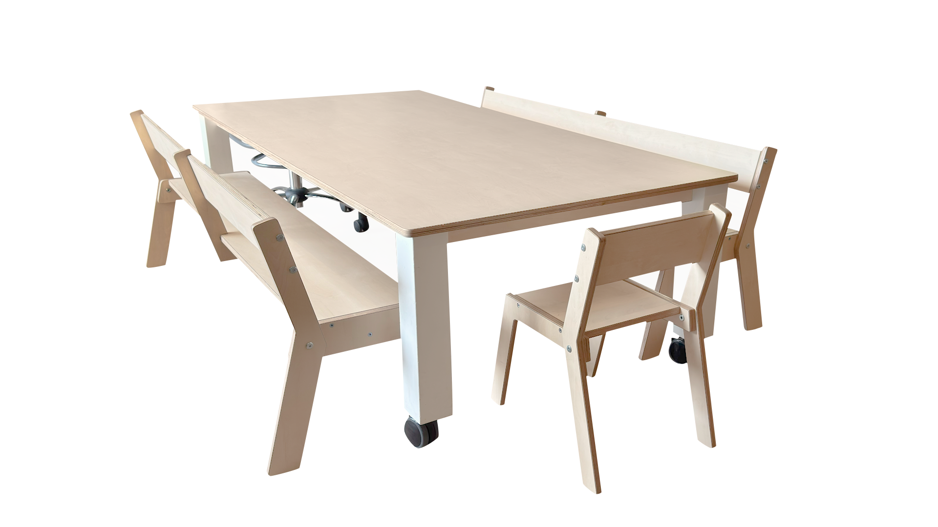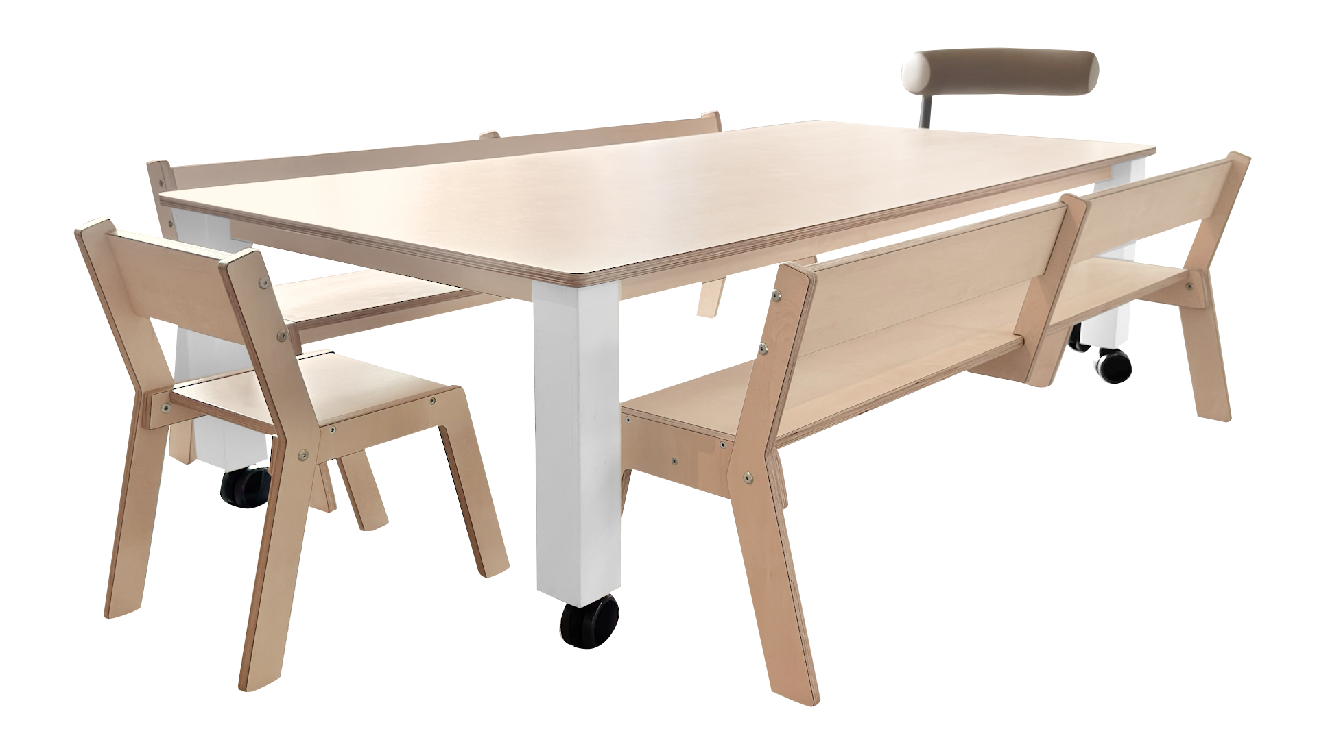 Uitgevoerd in berken multiplex met witte HPL toplaag.