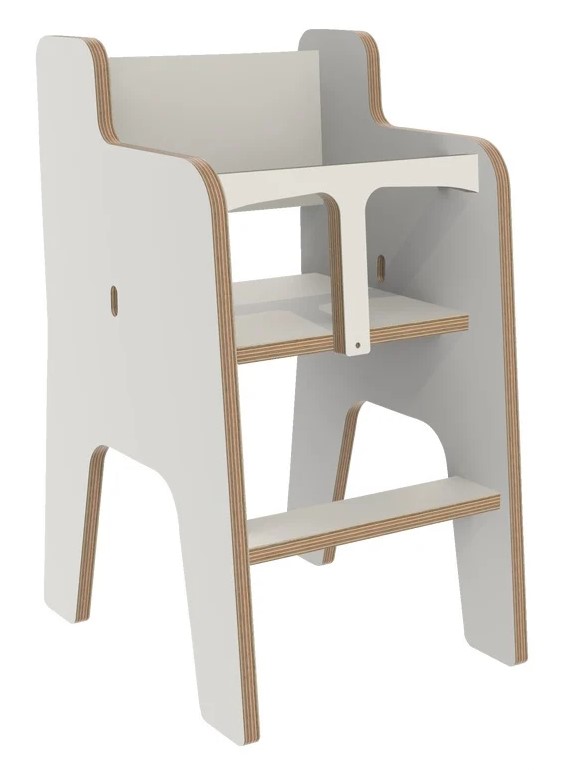 Met de hoge dreumesstoel kunnen dreumesen aan ons laagzitmeubilair op peuterhoogte zitten.