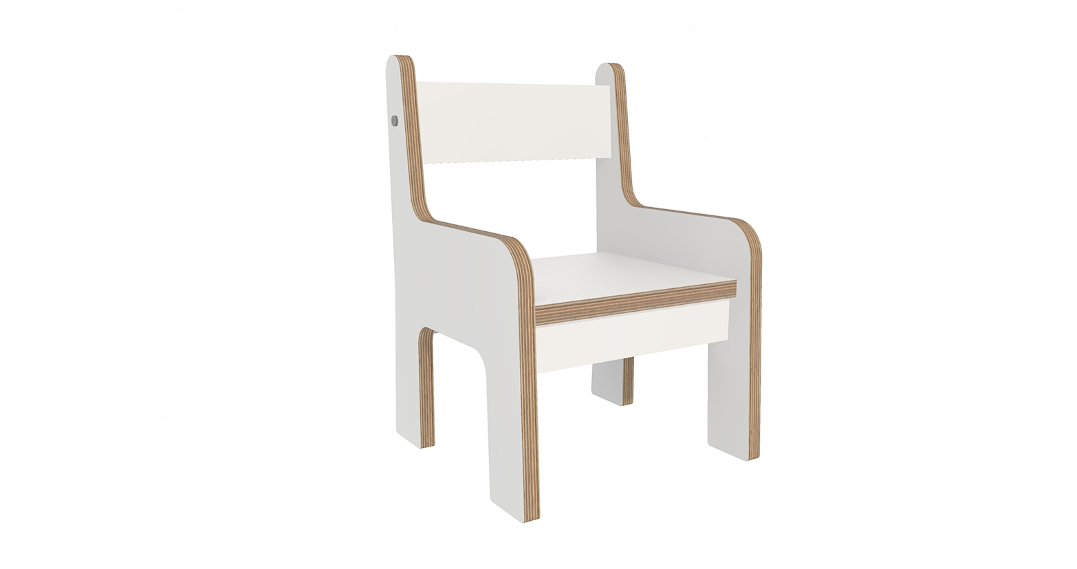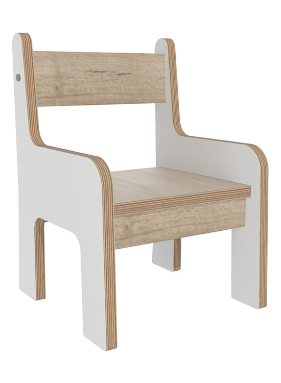 Bij de witte stoeltjes kunnen het zitpaneel en rugpaneel worden uitgevoerd in berken decor of grey craft oak.