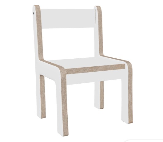Bij de witte stoeltjes kunnen het zitpaneel en rugpaneel worden uitgevoerd in berken decor of grey craft oak.