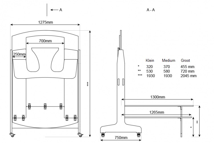| Tafel met dubbele wand, opklapbaar Dubbelwandige klaptafel inclusief geïntegreerde banken op zijn eigen verwijderbare muur. Een snelle, elegante oplossing om 12 mobiele zitplaatsen te creëren. De tafel staat op 4 wielen, dus hij kan gemakkelijk worden opgevouwen en opgerold wanneer hij niet in gebruik is. Ruimtebesparend tijdens het spelen en schoonmaken. De tafel is gemaakt van 18 mm wit gepigmenteerd berken multiplex met lichtgrijs duurzaam laminaat op de tafel en banken, tegen een meerprijs zijn andere kleuren leverbaar. Geleverd met gasdempers die het gemakkelijker maken om de tafel omhoog en omlaag te brengen. Gewicht: 87 kg Samengevouwen tafel: Afmetingen tafel: Hoogte: 718 mm. Lengte: 2675 mm. Breedte (totale body): 1275 mm. Afmetingen bank: hoogte: 53 mm. Lengte: 2675 mm. Breedte: 250 mm. Uitgevouwen tafel: Afmetingen: Hoogte: 2025 mm. Breedte: 1275 mm. Diepte: 750 mm |