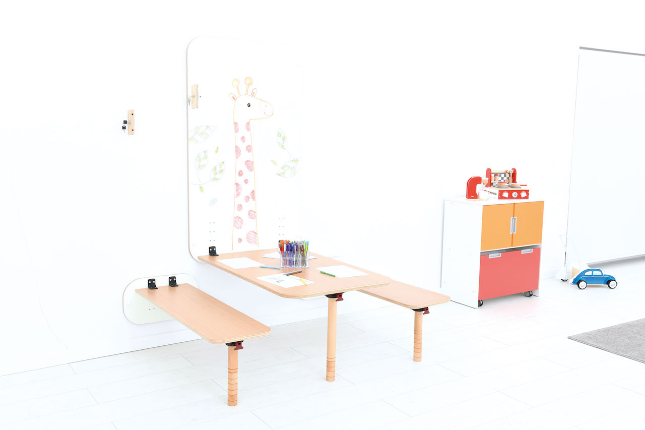 Klapbanken, wandmontage, bijpassende Flexi klaptafel A9202970.