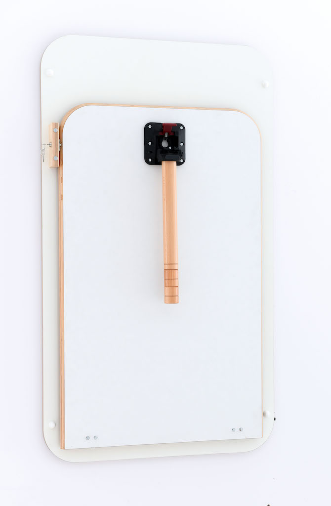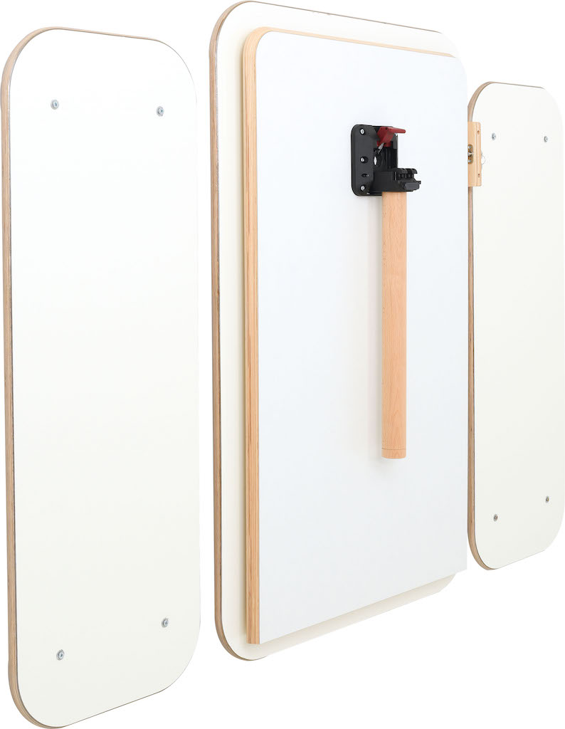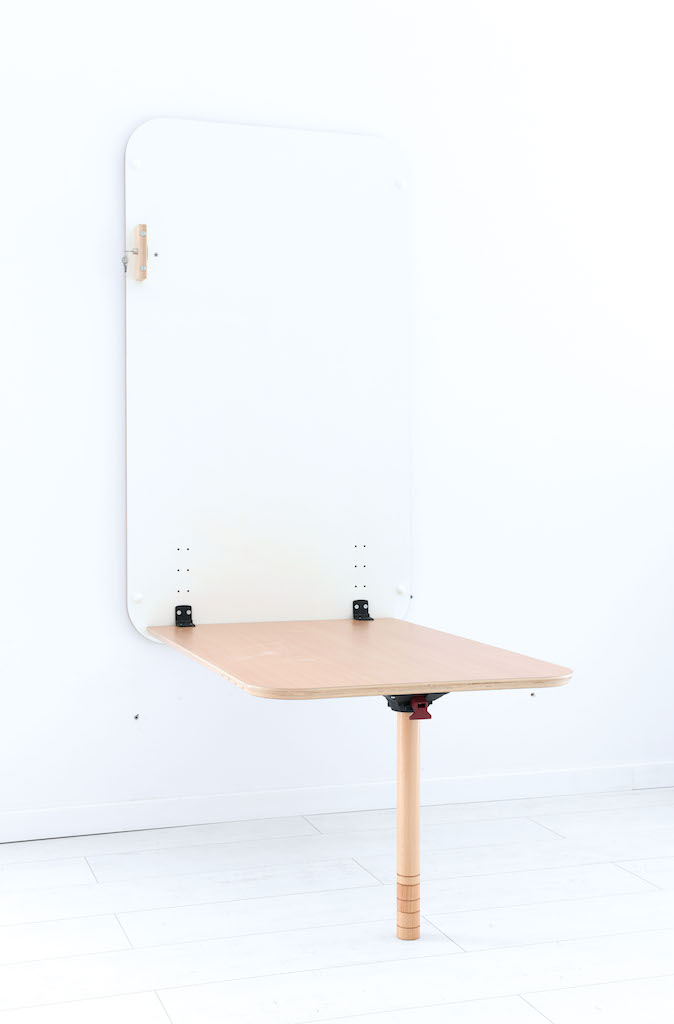 Na het uitklappen dient de magnetische wandplaat waaraan de tafel is bevestigd als bord waarop je met viltstiften kunt schrijven.