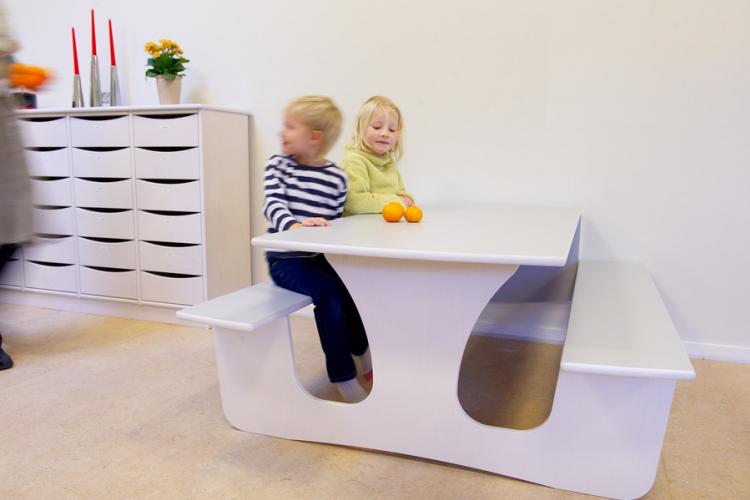 | Wandtafel met bank 1400 medium Klaptafel met geïntegreerde banken om aan de muur te hangen bespaart ruimte, die kan worden gebruikt voor spel en ontwikkeling. Klaptafel gemaakt van 18 mm wit gepigmenteerd berken multiplex met lichtgrijs duurzaam laminaat op tafel en banken, tegen een meerprijs zijn andere kleuren leverbaar. Geleverd met gasdempers die het gemakkelijker maken om de tafel omhoog en omlaag te brengen. Samengevouwen tafel: Afmetingen tafel: hoogte: 580 mm. Lengte: 1400 mm. Breedte: 1205 mm. Afmetingen bank: hoogte: 368 mm. Lengte: 1400 mm. Breedte: 250 mm. |